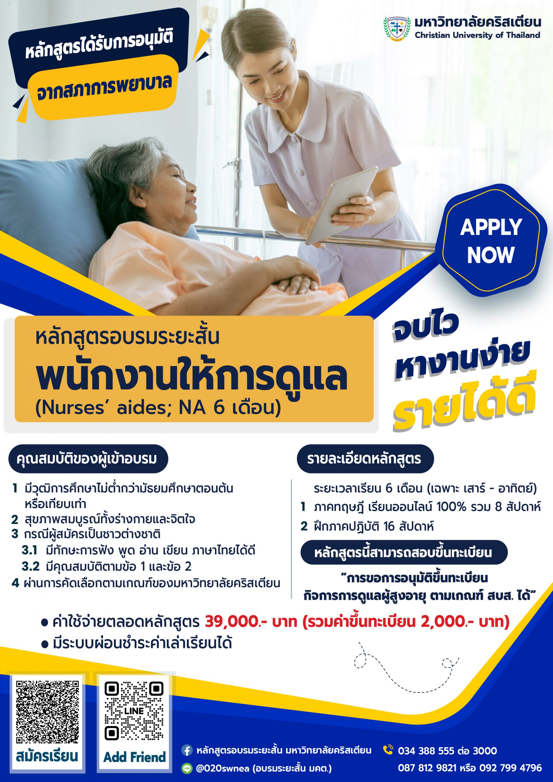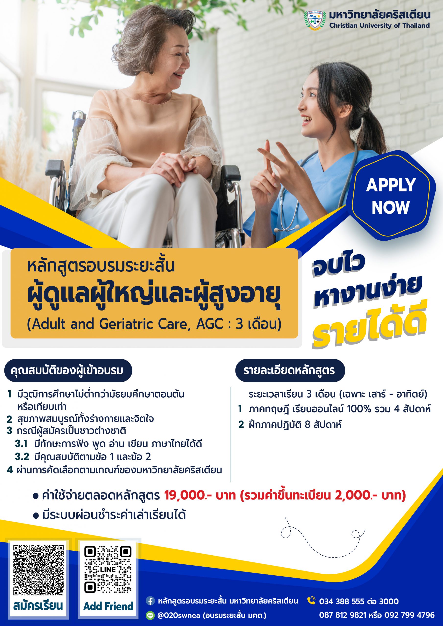 มหาวิทยาลัยคริสเตียน เปิดรับสมัครคัดเลือกบุคคลเข้าอบรมหลักสูตรประกาศนียบัตรผู้ดูแลผู้ใหญ่และผู้สูงอายุ+พนักงานให้การดูแล (6 เดือน)