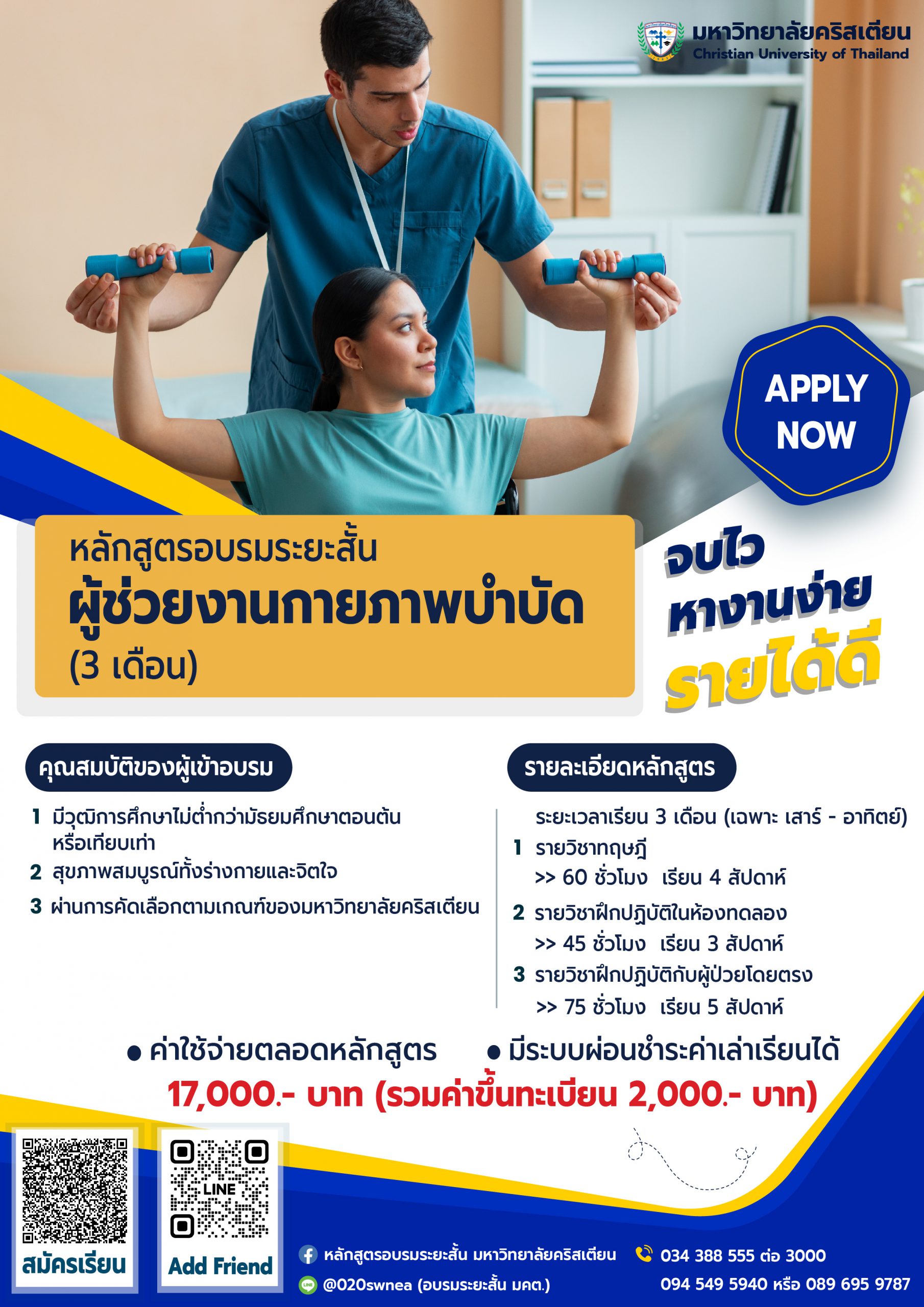 มหาวิทยาลัยคริสเตียน เปิดรับสมัครคัดเลือกบุคคลเข้ารับการอบรมหลักสูตรประกาศนียบัตร ผู้ช่วยงานกายภาพบำบัด